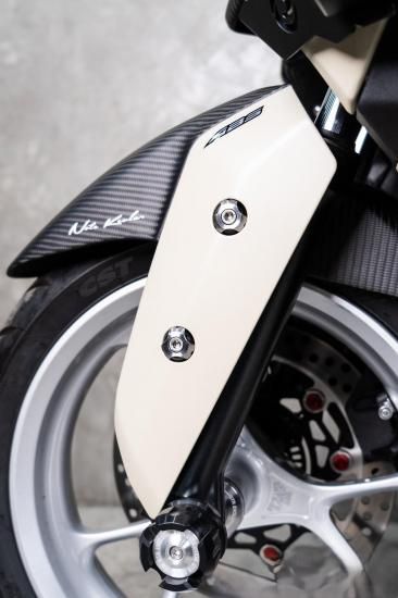 ヤマハ NMAX(2025年モデル)対応のフロントフォークスライダーです。転倒時のフロントフェンダーやフォーク、ホイール周辺を保護する実用性と、ドレスアップ効果を兼ね備えたカスタムパーツです。走行時の存在感を高めるアルマイトカラー仕上げで、愛車の足元にスポーティな印象をプラスします。