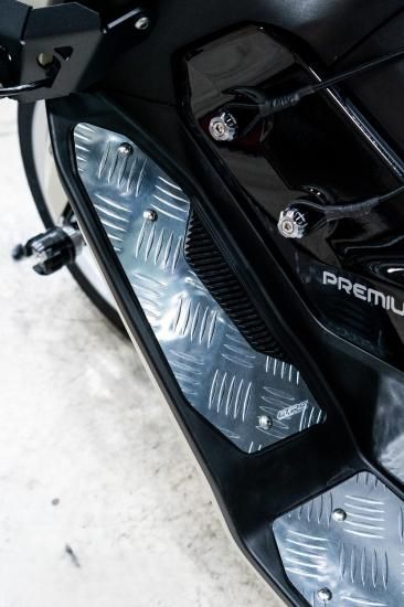 ヤマハ NMAX(2021年以降モデル)に対応したアルミ製ステップボードです。耐久性に優れた滑り止め加工付きのデザインで、実用性とドレスアップ効果を兼ね備えた人気カスタムパーツです。